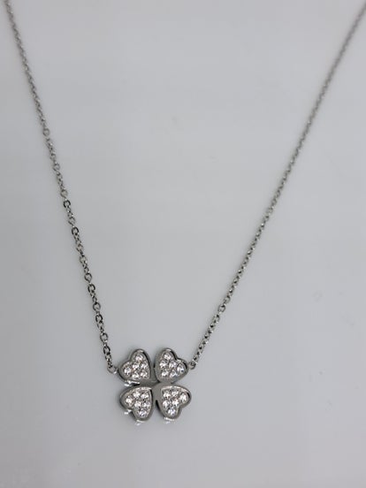 Collier sur chaîne en acier inoxydable composé d'un trèfle serti d'oxydes de zirconium.