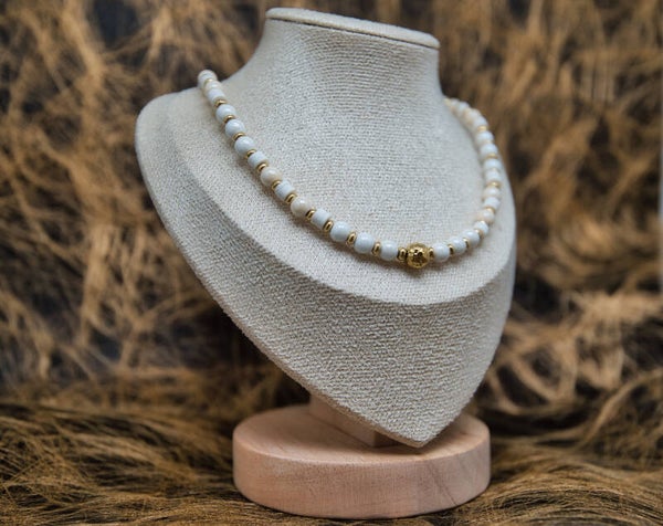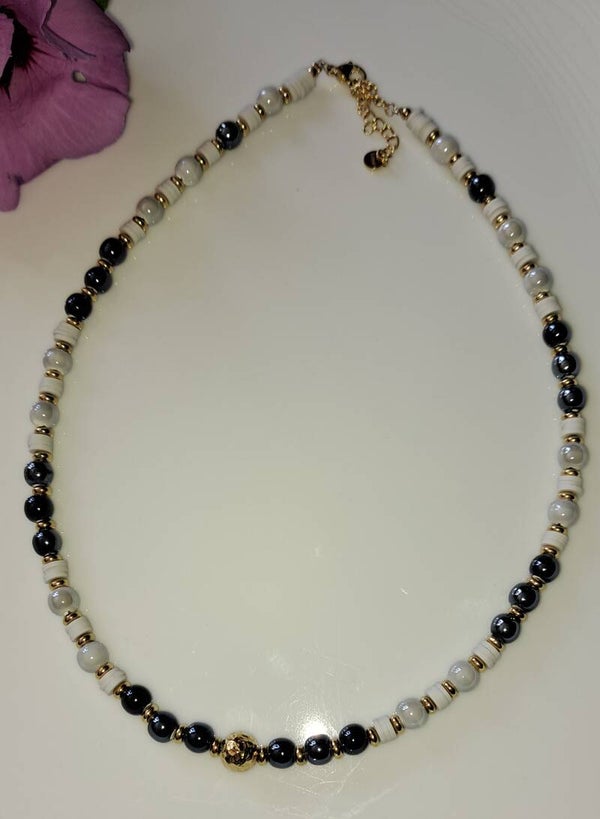 Collier sur fil orné de pierres naturelles teintées en rondelle, de pierres naturelles et de perles en acier inoxydable.