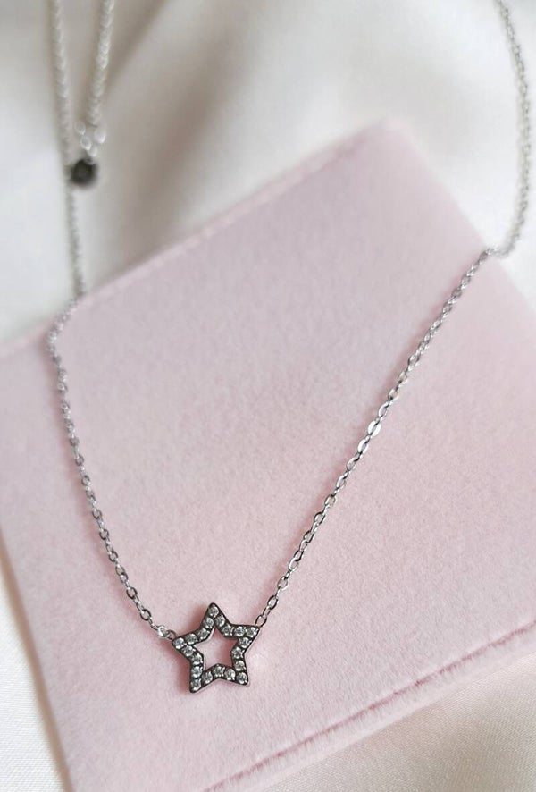 Collier en acier inoxydable composé d'une petite étoile serti de zirconiums.