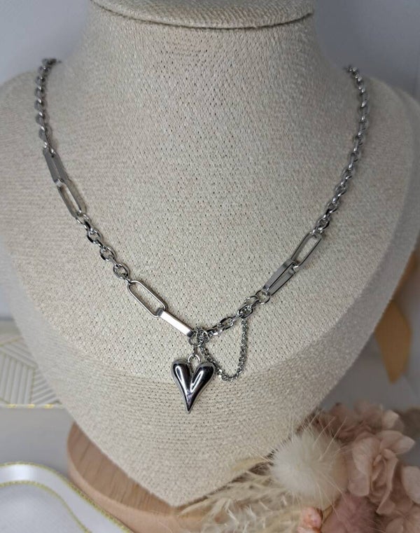 Collier en acier inoxydable en forme de cœur 44.5 cm
